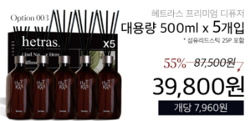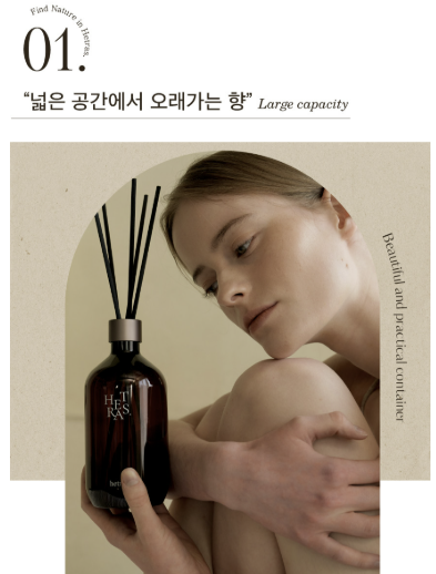 - 대용량 + 긴 지속력: 일반 디퓨저는 100~200ml 용량이 일반적이지만, 헤트라스는 500ml로 약 3~4개월 지속됩니다.