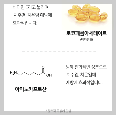 - 미백 효과: 치아 착색을 줄이고 자연스러운 미백 효과를 제공합니다.